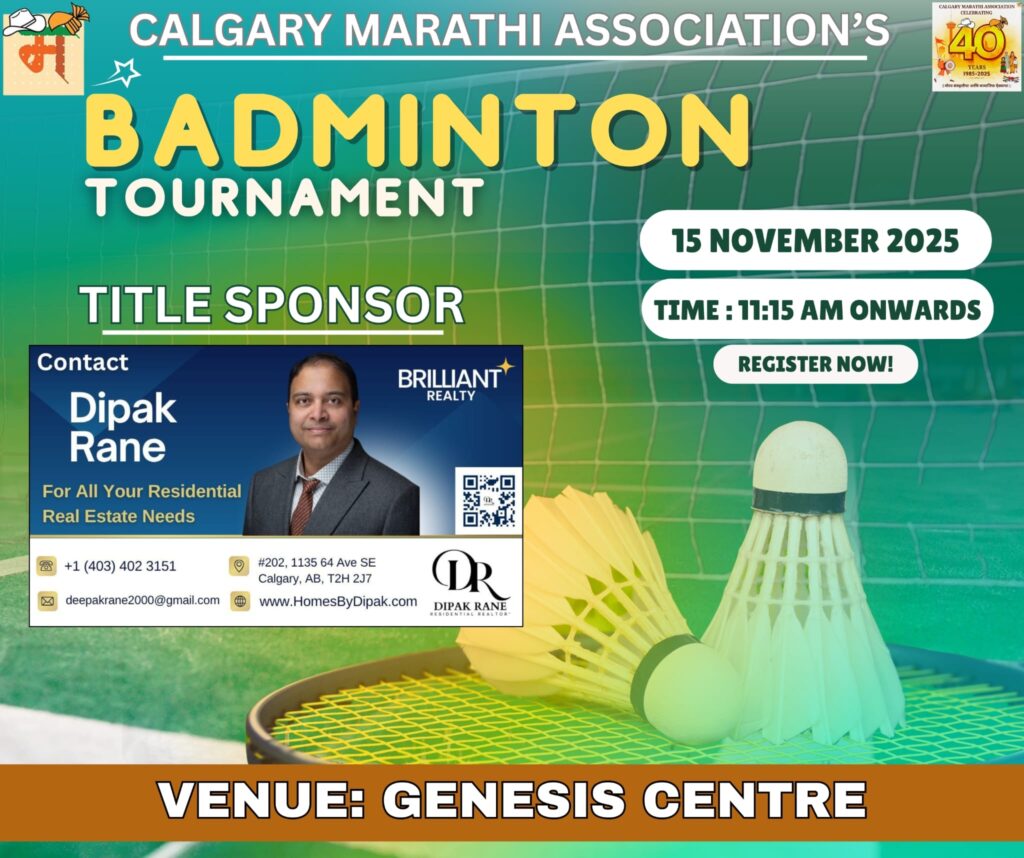 Once again, Calgary Marathi Association is excited to announce the registration is now open for our upcoming Badminton tournament! Find your partners, start practicing. Get ready to serve, smash and witness some amazing rallies.